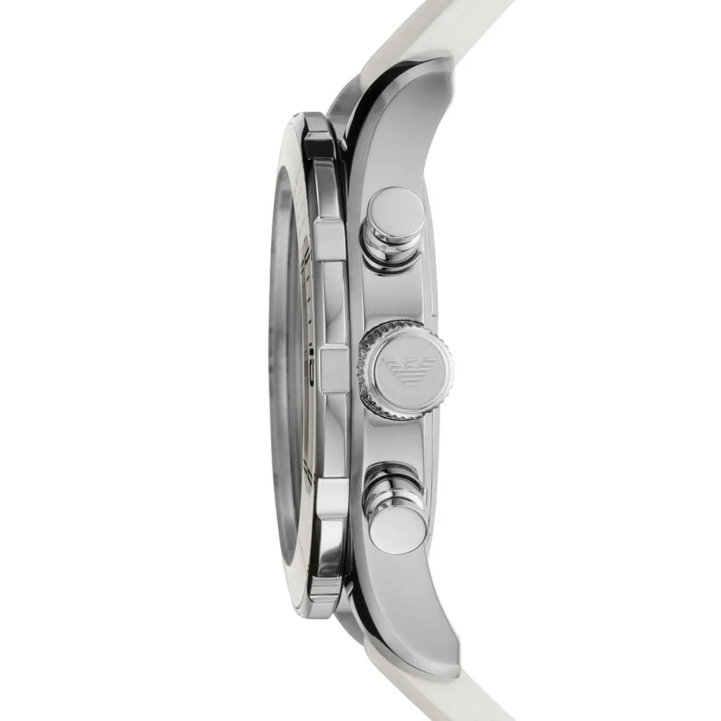 Experience timeless sophistication with the Emporio Armani Sportivo Chronograph. This striking timepiece features a pristine white dial paired with a comfortable white rubber strap, delivering both style and durability for the modern man. The chronograph functionality adds practical elegance, making it perfect for everyday wear or special occasions. Crafted with Emporio Armani's signature precision, this watch combines Italian design excellence with reliable performance. Elevate your wrist game with a timepiece that seamlessly transitions from boardroom to weekend adventures.