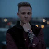 Gucci diving new model, unisex quartz watch, 40mm diameter stainless steel case, with black and orange two-color bezel, and many iconic Gucci elements. The shaped hour markers are decorated with an embossed Gucci logo on the black rubber strap. The Super LumiNova luminous embellishments on the hands and hour markers make the black dial shine and also light up the Gucci iconic double G logo.