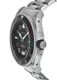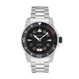 Stainless steel case with a stainless steel bracelet. Uni-directional rotating stainless steel bezel with an inalid black ring. Black dial with luminous silver-tone hands and index hour markers. Minute markers around the outer rim. Dial Type: Analog. Luminescent hands and markers. Date display at the 6 o'clock position.