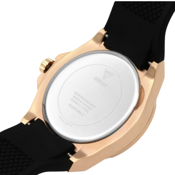The Venus is a contemporary and modern watch with an elegant design and crystal details. This Guess GW0118L2 watch is made of stainless steel, has a silicone strap and a black dial adorned with crystals.