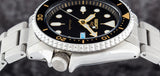 Seiko 5 Sports SRPD57K1 Metal Band Men Watch. The case is made out of silver stainless steel with a black bezel, which stands for the high quality of the item, it has a black color dial. This model has got 100 meters of water resistance. it can be worn in scenarios where it is likely to be splashed but not immersed in water and will be fine in rain. The watch is shipped with an original box and a guarantee from the manufacturer.