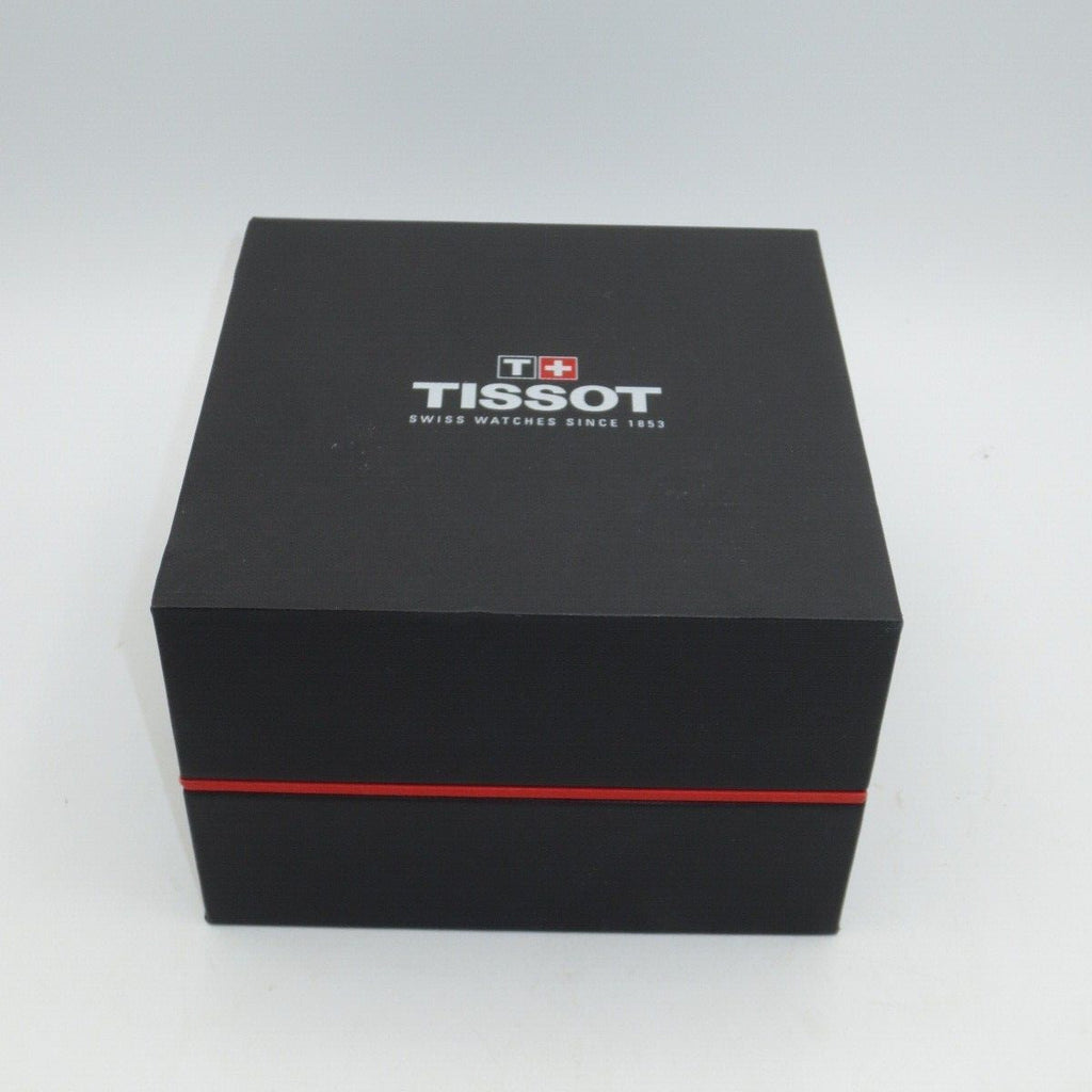 The 40mm tonneau shaped case has applied luminous slim stick markers surrounded by a minutes track. Applied luminous slim stick markers are surrounded by a minutes track. Luminous baton style hands and date window within the 3 are easily readable behind a circular scratch resistant anti-reflective sapphire crystal. Equipped with a polished ridged domed push-pull crown and 100 meter water resistance rating. Fitted with a black textured rubber strap with brushed and polished black PVD coated stainless steel tang pin-buckle clasp closure with Tissot emblem.
