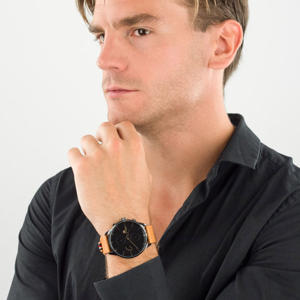 Tommy Hilfiger James Quartz Black Dial Brown Leather Strap Watch For Men - 1791486
