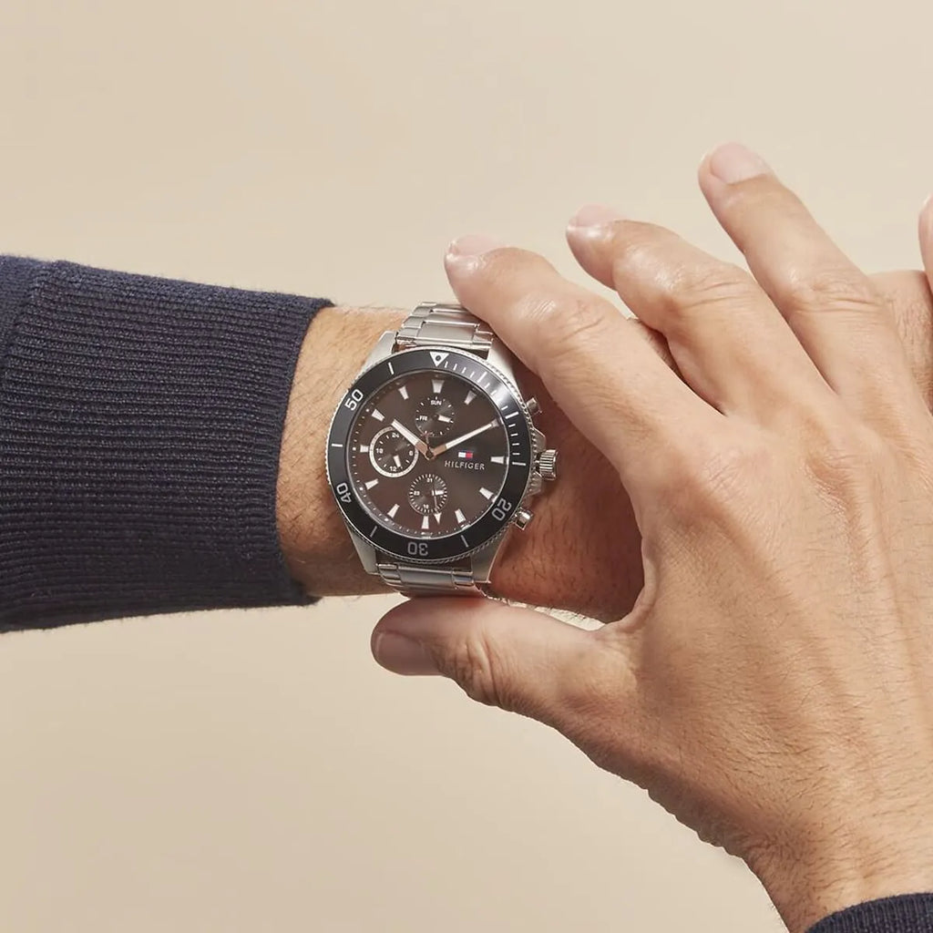 Tommy Hilfiger Larson Multifunction Black Dial Silver Steel Strap Watch For Men - 1791916