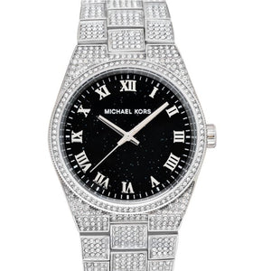 $0 - $500 All Products All Products Best Selling Products Black Dial In Stock Michael Kors Channing Michael Kors Watches Michael Kors Watches for Women New Arrivals Silver Strap Steel Strap Watches for Women