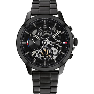 This is the classy Tommy Hilfiger Henry Black Men's Watch 1710478. This 44mm watch features an all black design, with accents in the classic Tommy Hilfiger colours. Be the best dressed in this spectacular Tommy Hilfiger skeleton dial watch with...