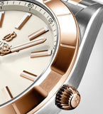 Stylish yet elegant, the modern-retro inspired Chronomat 32 is the versatile sporty and chic watch for any occasion. It is available in an array of metal cases, from cool stainless steel, to goes-with-everything bicolor, or even luxurious 18k red gold. Women craving extra sparkle will also be able to opt for diamond-set bezels, indices, and colorful dials. Featuring Breitling’s iconic and comfortable “Rouleaux” bracelet with a butterfly clasp, the Chronomat 32 is powered by the Breitling Caliber 77, a COSC-certified SuperQuartz™ chronometer.