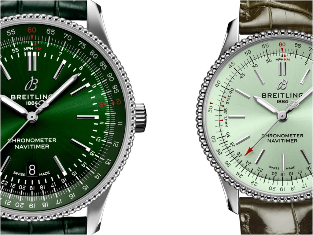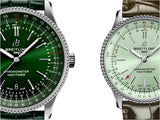 Breitling Navitimer Automatic 35 Green Dial Green Leather Strap Watch for Women - A17395361L1P1