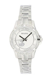 - Swarovski crystal accents on bezel; mother of pearl dial