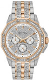 Quartz movement. Scratch resistant mineral crystal. Pull / push crown. Solid case back. Round case shape. Case size: 32 mm. Case thickness: 8 mm. Band width: 17 mm. Deployant clasp. Water resistant at 30 meters / 100 feet. Functions: hour, minute, second. Additional Info: case and bracelet embellished with 110 statement making baguette swarovski® crystals. Dress watch style. Watch label: Japan Movt. Bulova Phantom Rose Gold-tone Baguette Swarovski Crystal Ladies Watch 98L268.