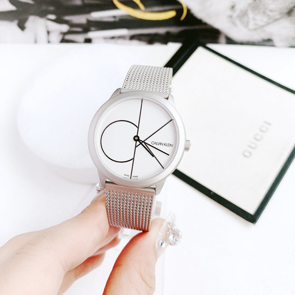 The Calvin Klein Minimal women's quartz watch exudes sophisticated style with a silver stainless steel mesh bracelet and white dial. The round case is made of durable stainless steel and is water resistant up to 30 m (100 feet). This watch features a Swiss-made ETA 901.001 movement for precise timekeeping.