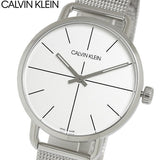 Stainless steel case with a stainless steel mesh bracelet. Fixed stainless steel bezel. Silver dial with luminous silver-tone hands and index hour markers. Dial Type: Analog. Luminescent hands. Quartz movement. Scratch resistant mineral crystal. Pull / push crown. Solid case back. Round case shape. Case size: 42 mm. Case thickness: 9 mm. Band width: 18 mm. Fold over slip through clasp. Water resistant at 30 meters / 100 feet. Functions: hour, minute. Even Series. Casual watch style. Watch label: Swiss Made. Calvin Klein Even Quartz Silver Dial Ladies Watch K7B21126.