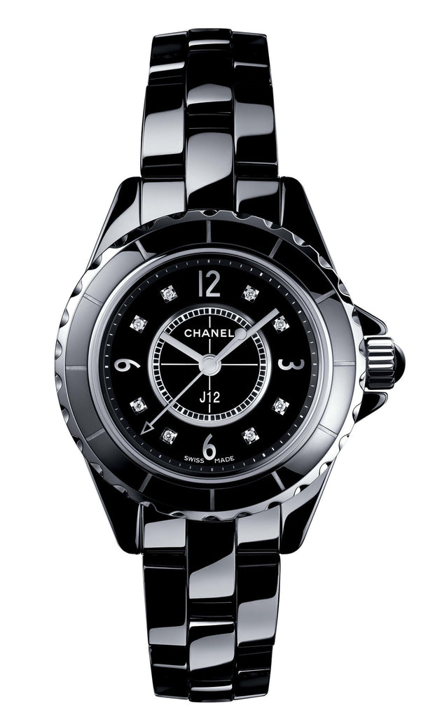 Chanel J12 Diamonds Black Dial Black Steel Strap Watch for Women - J12 H2569