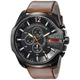 Diesel Mega Chief Chronograph Black Dial Brown Leather Strap Watch For Men - DZ4343
