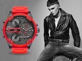Diesel Mr Daddy 2.0 Chronograph Black Dial Red Silicone Strap Watch For Men - DZ7370