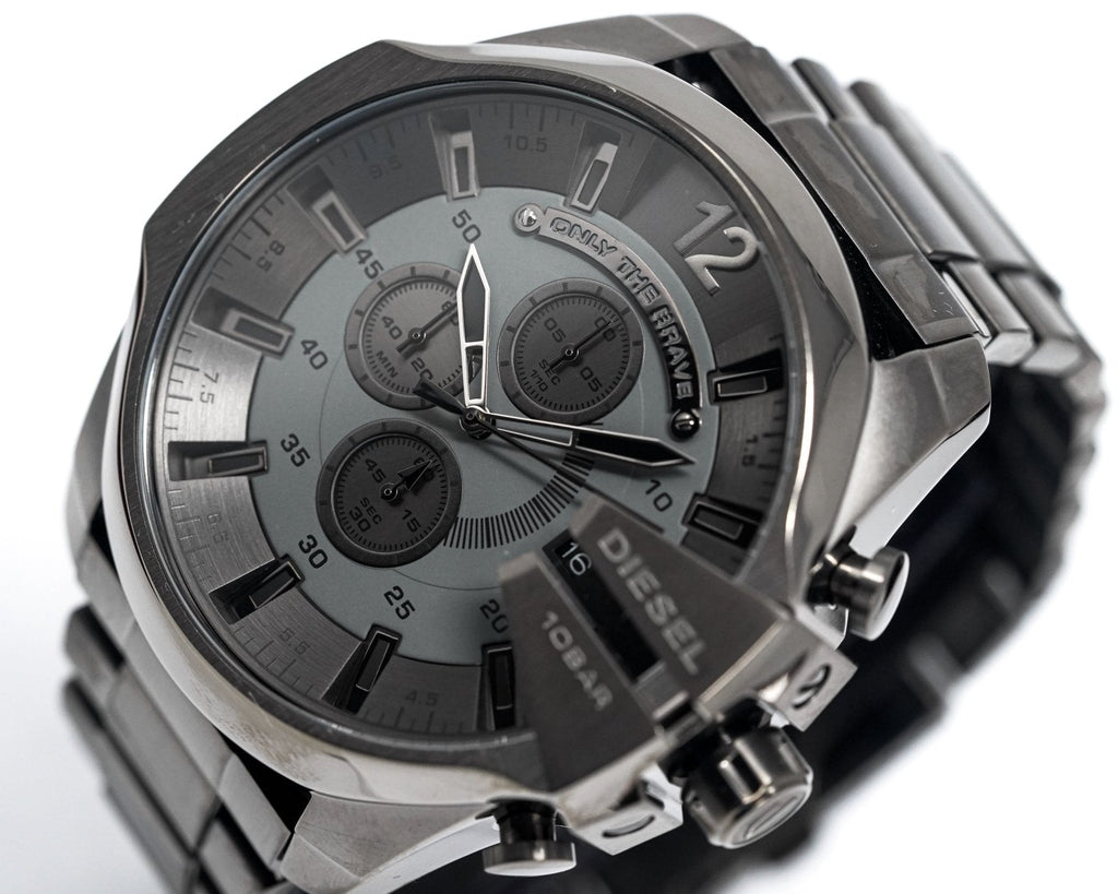 Diesel Mega Chief Chronograph Grey Dial Grey Steel Strap Watch for Men - DZ4282