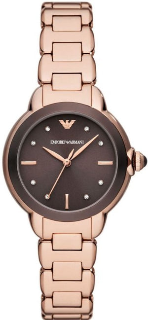 Emporio Armani Mia Quartz Brown Dial Rose Gold Steel Strap Watch For Women - AR11570