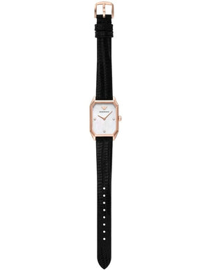 Emporio Armani watch featuring 24x35mm case with two-hand movement Mother-of-pearl dial with rose gold-tone hands and black leather strap With the Emporio...