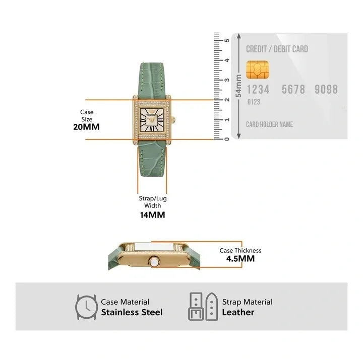 Elevate your everyday style with the Emporio Armani Classic White Dial Green Leather Strap Watch for Women. Featuring a crisp white face complemented by a rich green leather strap, this watch adds a fresh and elegant touch to any outfit. Its timeless design ensures versatile wear, while the quality craftsmanship guarantees durability and comfort. Perfect for those who appreciate understated luxury with a pop of color, this watch is a sophisticated accessory that seamlessly blends fashion and function.