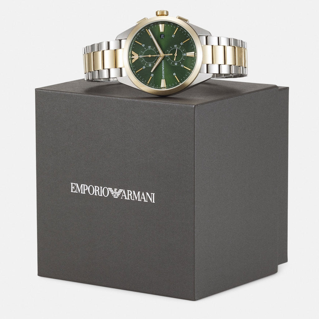 Emporio Armani Claudio Chronograph Green Dial Two Tone Steel Strap Watch For Women - AR11511