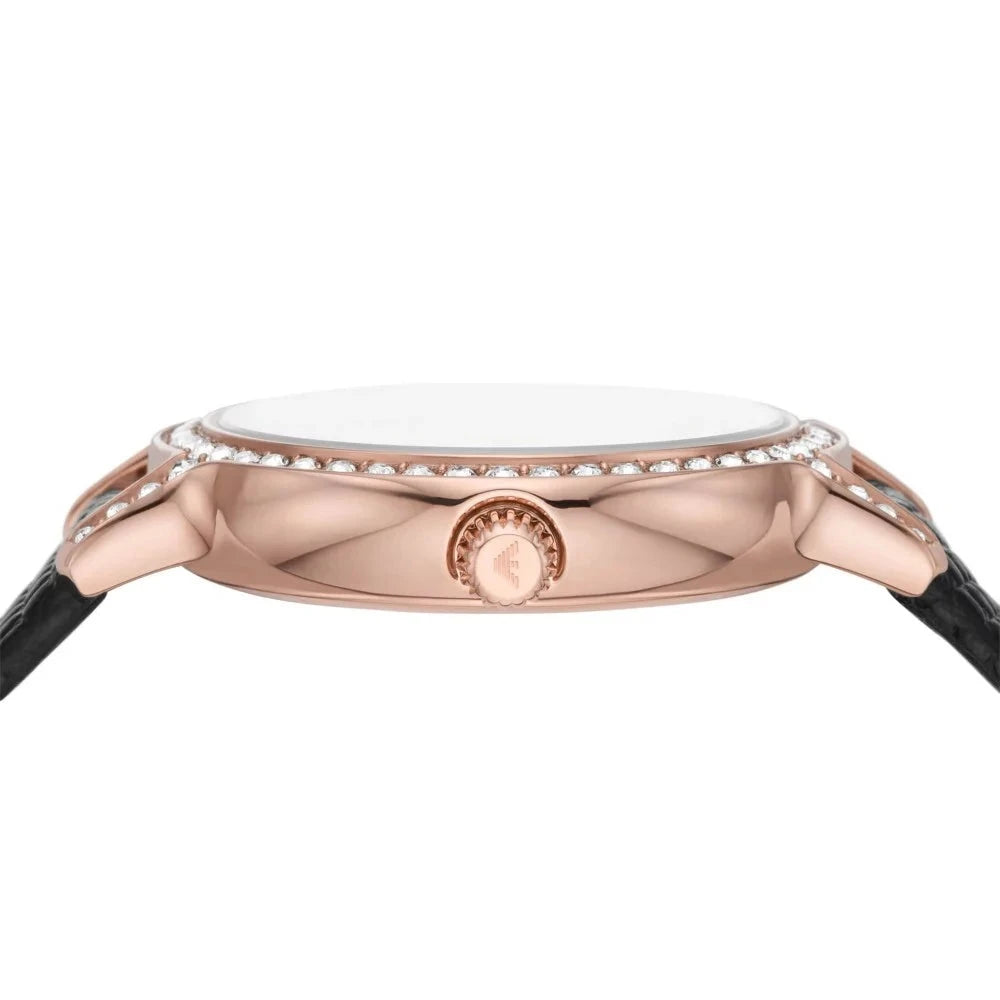 Emporio Armani Cleo Three-Hand Mother of Pearl Dial Black Leather Strap Watch For Women - AR11485