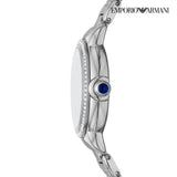 Emporio Armani Mia Three Hand Crystals Blue Dial Silver Steel Strap Watch For Women - AR11630