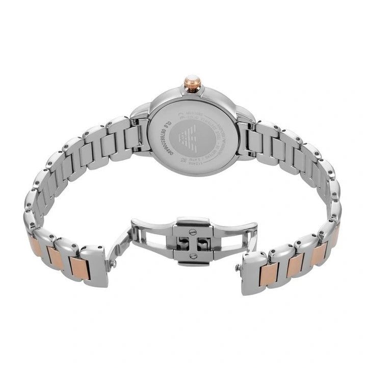 Emporio Armani Mia Three-Hand Analog Crystal Silver Dial Two Tone Steel Strap Watch For Women - AR11643