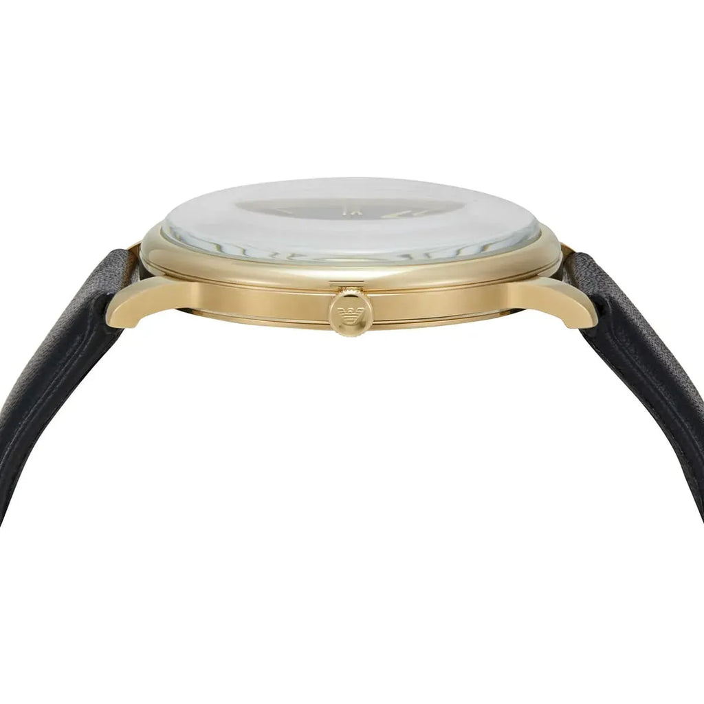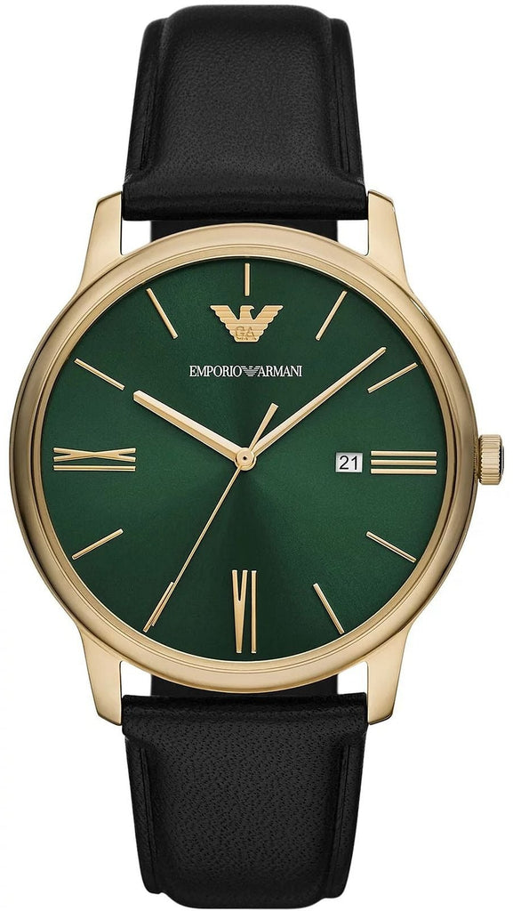 Emporio Armani Minimalist Green Dial Black Leather Strap Watch for Men - AR11601
