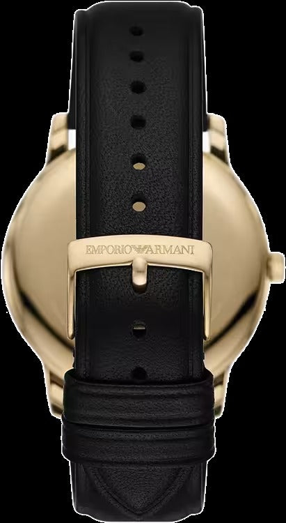 The Emporio Armani AR11601 Minimalist Watch is a perfect blend of elegance and simplicity. Featuring a 41mm gold-tone stainless steel case and a striking green dial, this watch stands out as a refined accessory for any occasion. The black leather band, with a 21mm width, adds a classic touch, while the reliable quartz movement ensures precise timekeeping. Designed with a water resistance of up to 50 meters and equipped with a secure buckle clasp, this timepiece is as practical as it is stylish, making it an ideal choice for the modern gentleman.