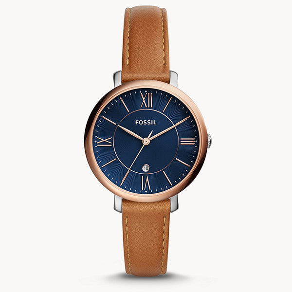 Fossil Jacqueline Three Hand Date Luggage Blue Dial Brown Leather Strap Watch for Women - ES4274