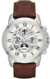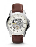 Fossil Grant Automatic White Dial Brown Leather Strap Watch for Men - ME3052