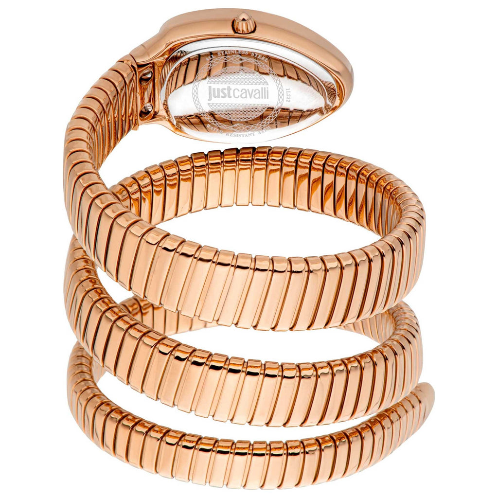 Elevate your style with the Just Cavalli Signature Snake Green Dial Ladies Watch. This stunning watch is not just a timepiece, but a statement piece. The sleek green dial and signature snake design add a touch of luxury to any outfit. Make a bold and confident statement with this watch on your wrist.