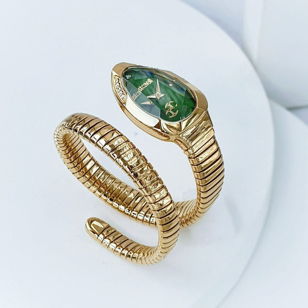 Just Cavalli Serpente Metallica Green Dial Rose Gold Steel Strap Watch for Women - JC1L208M0055