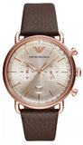 Emporio Armani Aviator Grey Dial Brown Leather Strap Watch For Men - AR11106