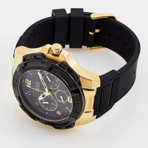 Introducing the Guess Genesis Chronograph Watch, designed for the modern man. With its sleek black dial and silicone strap, it exudes style and sophistication. Stay punctual and on-trend with this must-have timepiece. Live your best life with Guess.