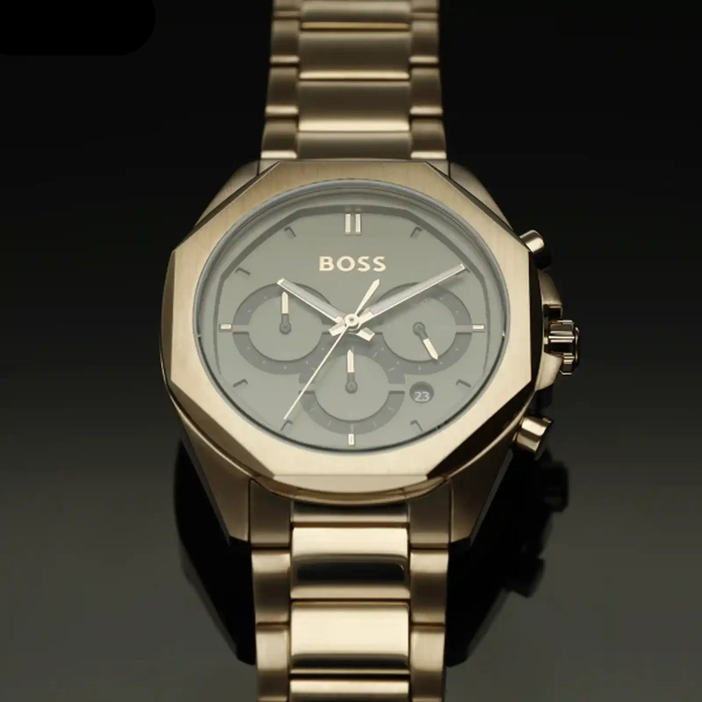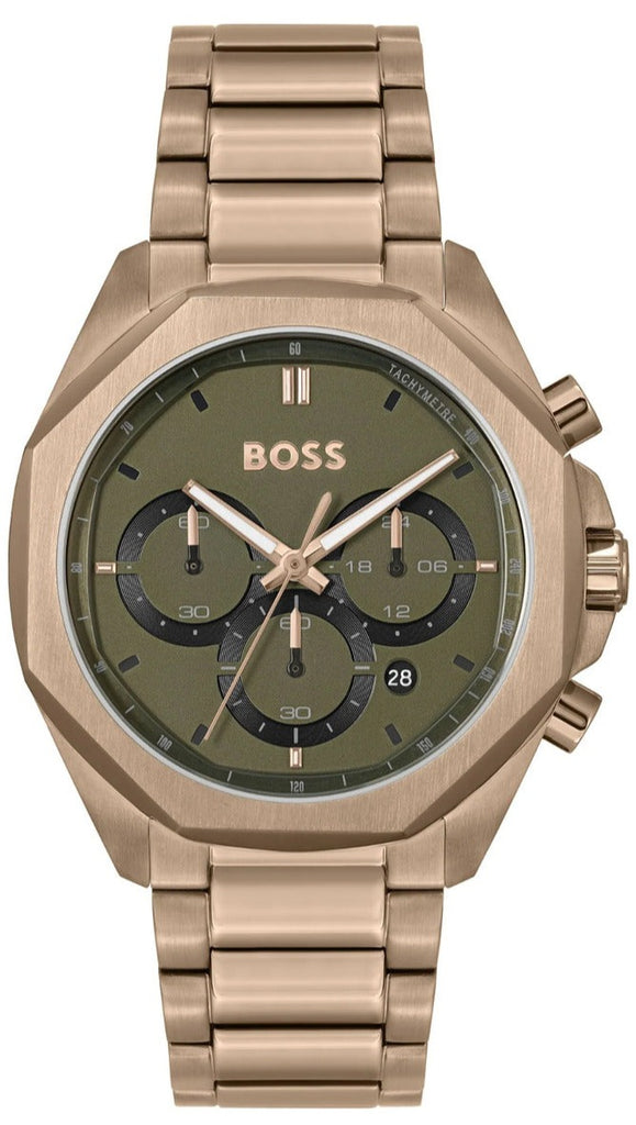 Hugo Boss Classic Chronograph Green Dial Beige Gold Steel Strap Watch For Men - 1514019