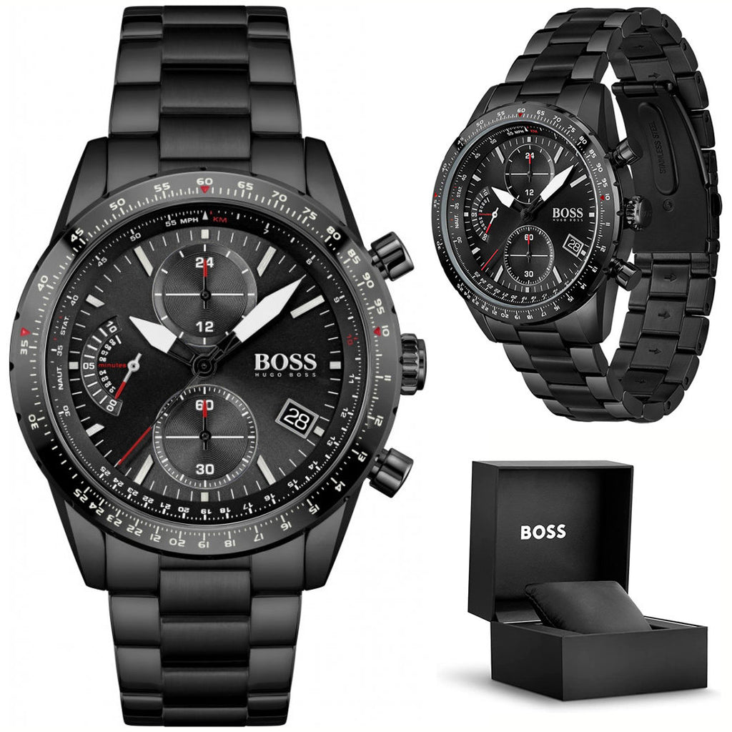Discover the sophisticated style and precision of the Hugo Boss Pilot Edition Black Dial Black Steel Strap Watch for Men. With a modern black dial and sleek black steel strap, this watch exudes confidence and class. Its precision engineering ensures accurate timekeeping, making it the perfect accessory for any occasion.