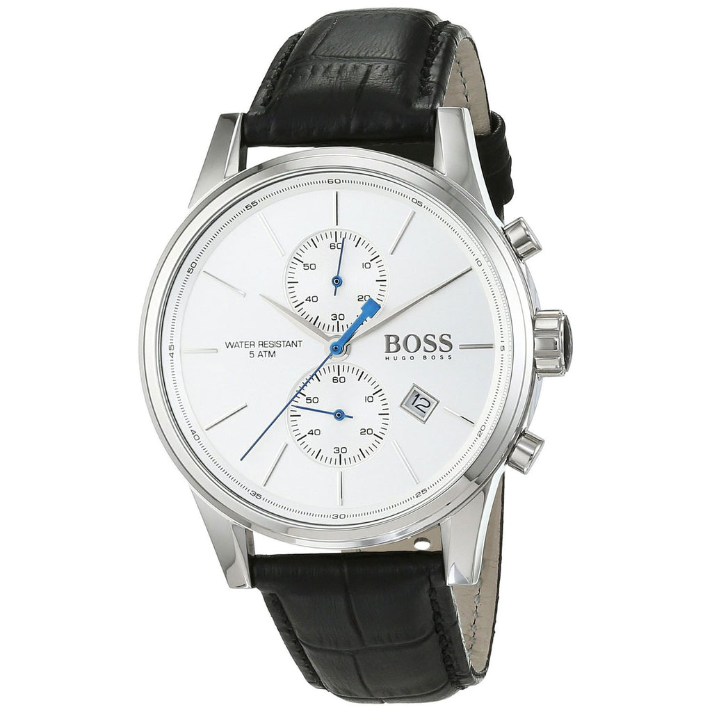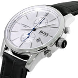 Hugo Boss Jet Silver Dial Black Leather Strap Watch for Men - 1513282