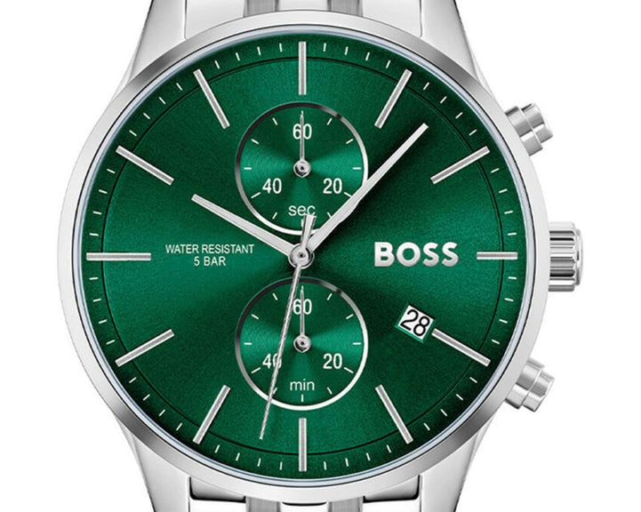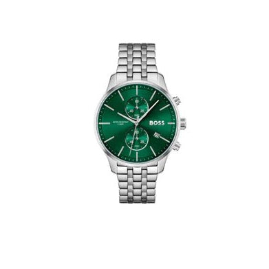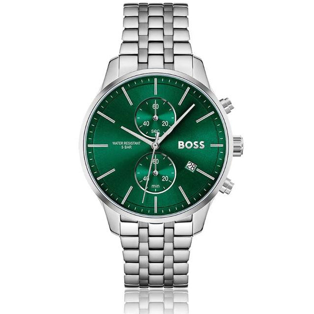 Hugo Boss Associate Chronograph Green Dial Silver Steel Strap Watch for Men - 1513975