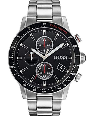 Hugo Boss Rafale Chronograph Black Dial Silver Steel Strap Watch for Men - 1513509