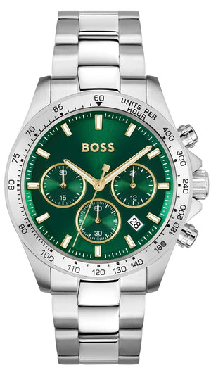 Hugo Boss Hero Chronograph Green Dial Silver Steel Strap Watch for Men - 1514217