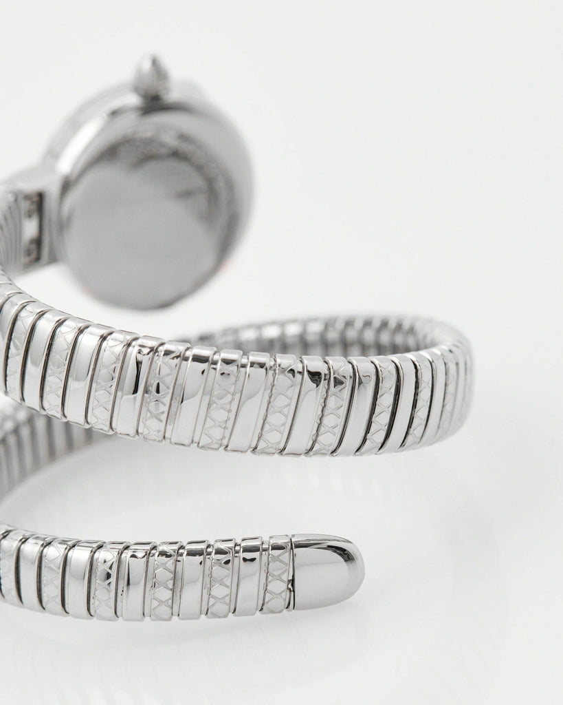 Elevate your style with the Just Cavalli Enchanting watch. Featuring a striking Tiffany blue dial paired with a sleek silver steel strap, this women's timepiece combines bold design with lasting durability. Its unique snake motif adds an edgy touch to your outfit, making it perfect for both everyday wear and special occasions. Experience fashion-forward elegance that keeps you timely and trendy.