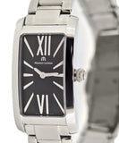 Maurice Lacroix Fiaba - slim and feminine, fashionable and contemporary with a touch of classic. Ergonomically designed rectangular shaped stainless steel case with sapphire crystal. Swiss ETA quartz movement. Black dial with Roman and diamond markers. Stainless steel bracelet.