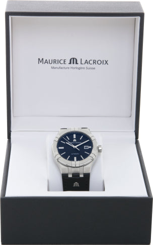 Maurice Lacroix Aikon Date Automatic Black Dial Black Leather Strap Watch For Men - AI6008-SS001-330-1