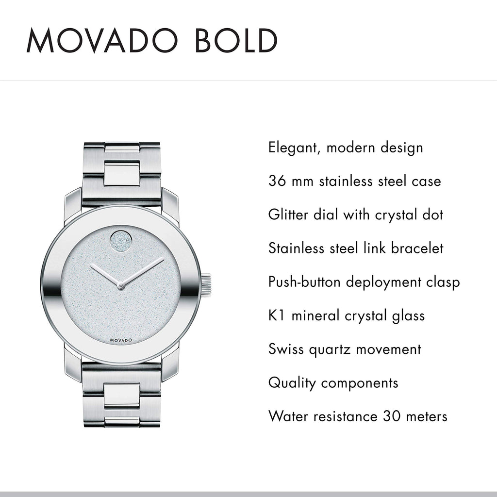 Movado Bold Crystal Dot Silver Dial Silver Steel Strap Watch For Women - 3600334