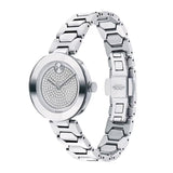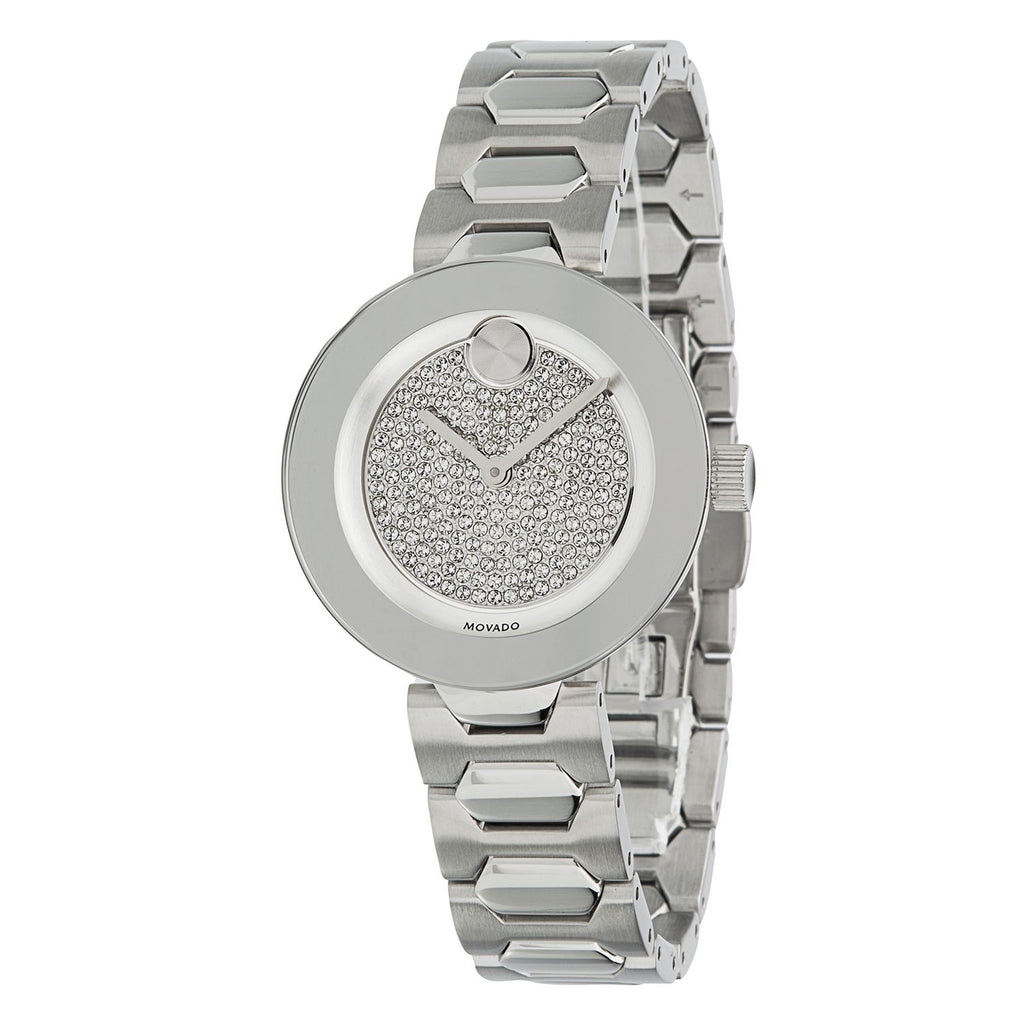 Brand New Authentic Movado Bold Silver Pave Crystal Steel Women's Watch Model 3600567. Stainless Steel case with Silver Stainless Steel watch band. Deployment clasp. Dial description: Silver Pave Crystal dial. Silver dial. Swiss Quartz movement. K1 Mineral crystal. Round case shape. Case size: 32mm. 30 Meters - 100 Feet water resistant. 2 year warranty.