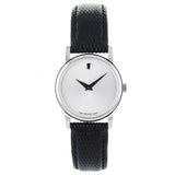 Movado Museum Silver Dial Black Leather Strap Watch For Women - 2100003