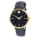 Movado Ultra Slim Black Dial Black Leather Strap Watch For Women - 0607091