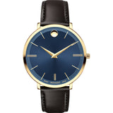 Movado Ultra Slim Blue Dial Brown Leather Strap Watch For Women - 0607092