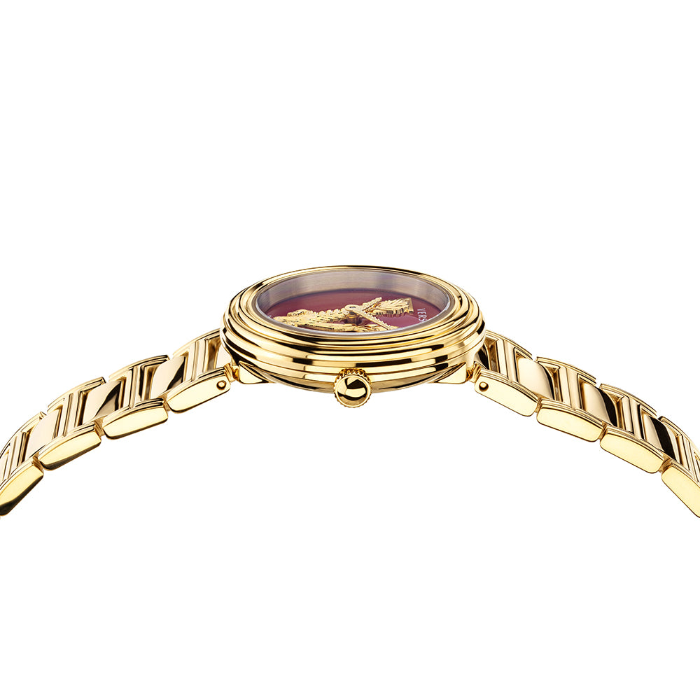 Versace Virtus Mini Quartz Red Dial Gold Steel Strap Watch For Women - VET300321